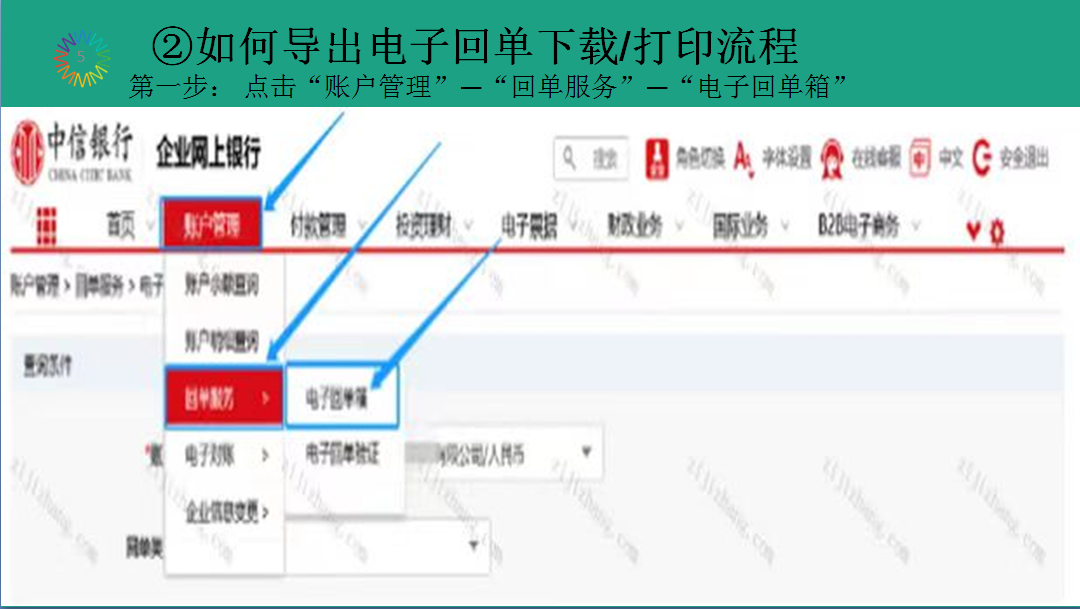 中信銀行網(wǎng)銀電子回單和電子對賬單打印流程